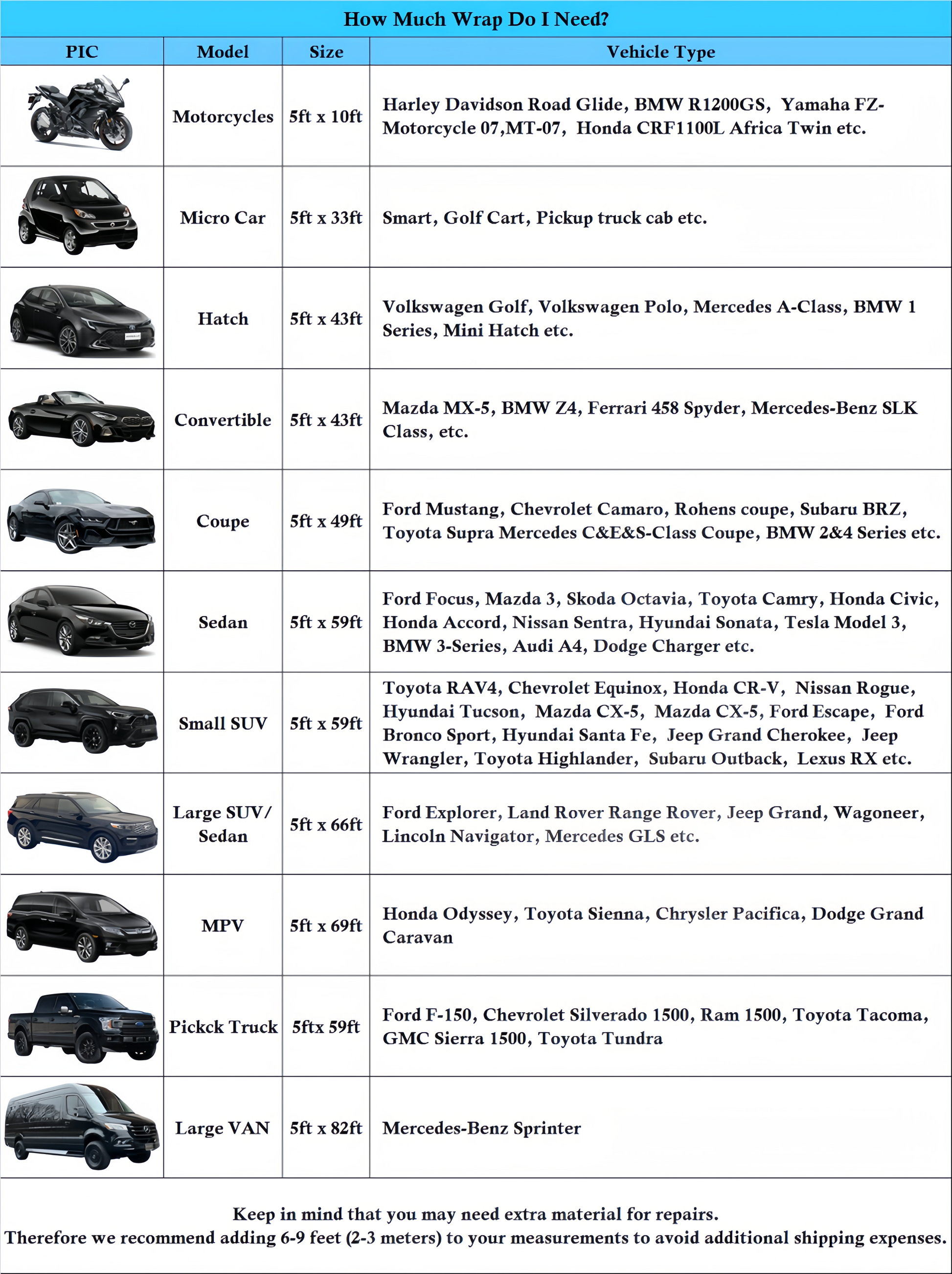 The film is suitable for Toyota, Ford, Chevrolet, Honda, Nissan, Jeep,Hyundai, Kia, Ram,Subaru, GMC, Tesla, Mercedes-Benz, BMW,Mazda, Volkswagen, Lexus, Dodge, Audi,Buick, Cadillac, Acura,Volvo, Chrysler, infiniti, land rover, lincoln, mitsublshi and so on.