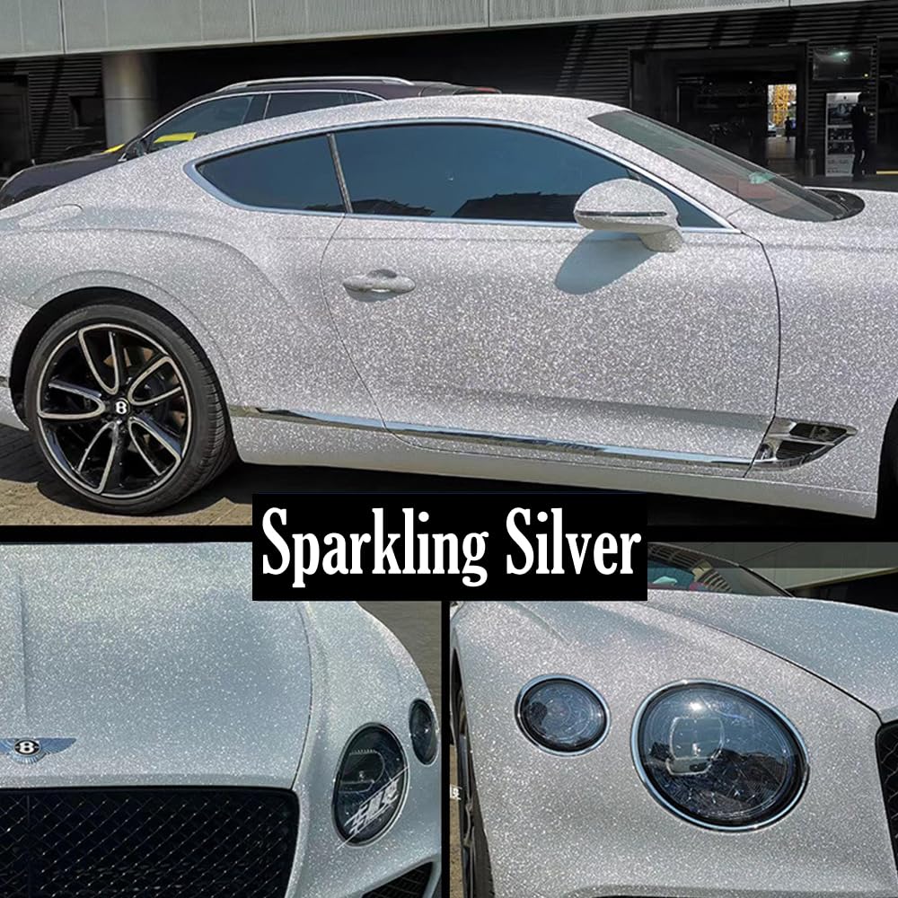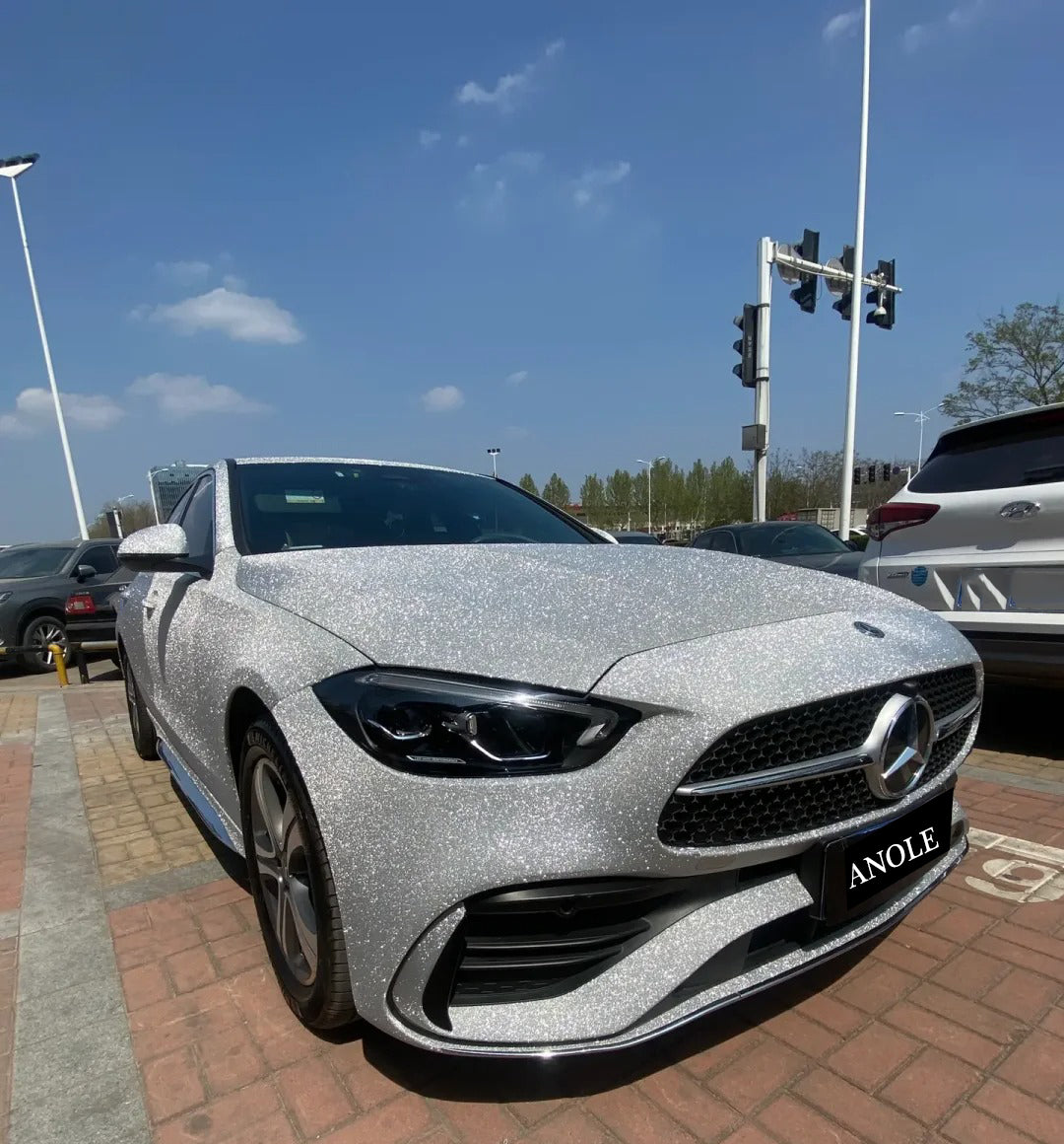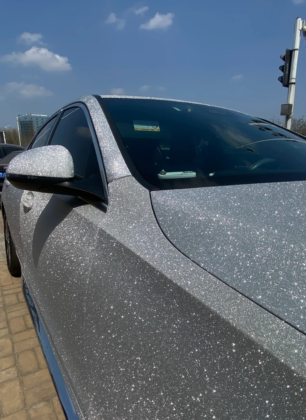 Anole Matte Diamond Super Glitter Silver Car Vinyl Wrap Matte Silver Vinyl for Cars&Trucks