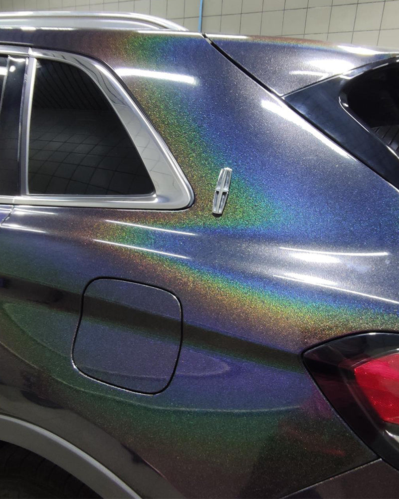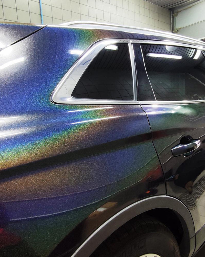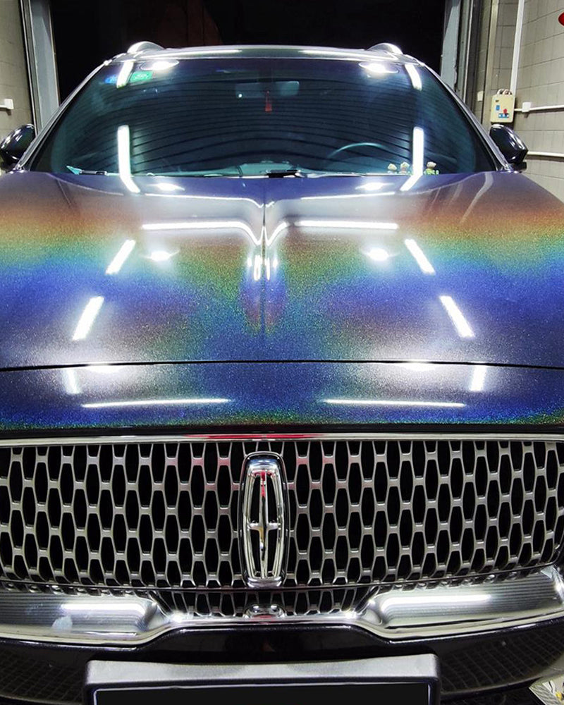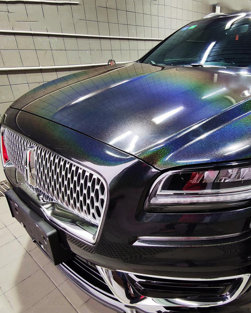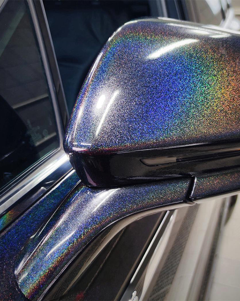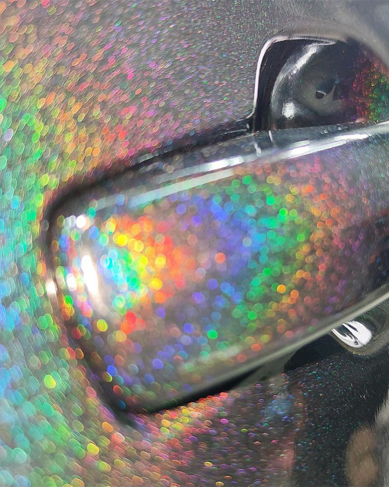 When sunlight hits, watch as a dazzling color show unfolds. The dark gray base, with its sleek elegance, sets the stage. What makes this wrap special is the rainbow metallic sheen that shimmers and shifts as you move, ensuring your car stands out everywhere.