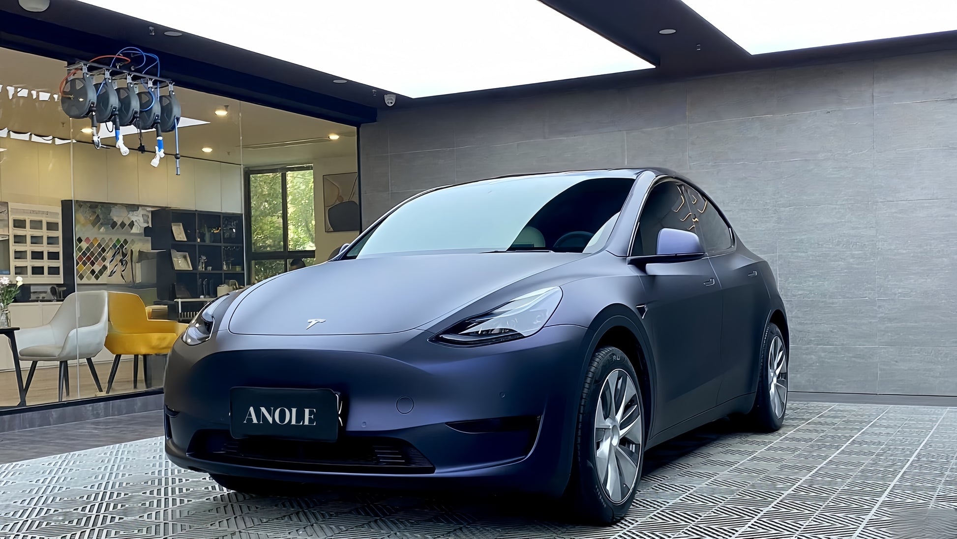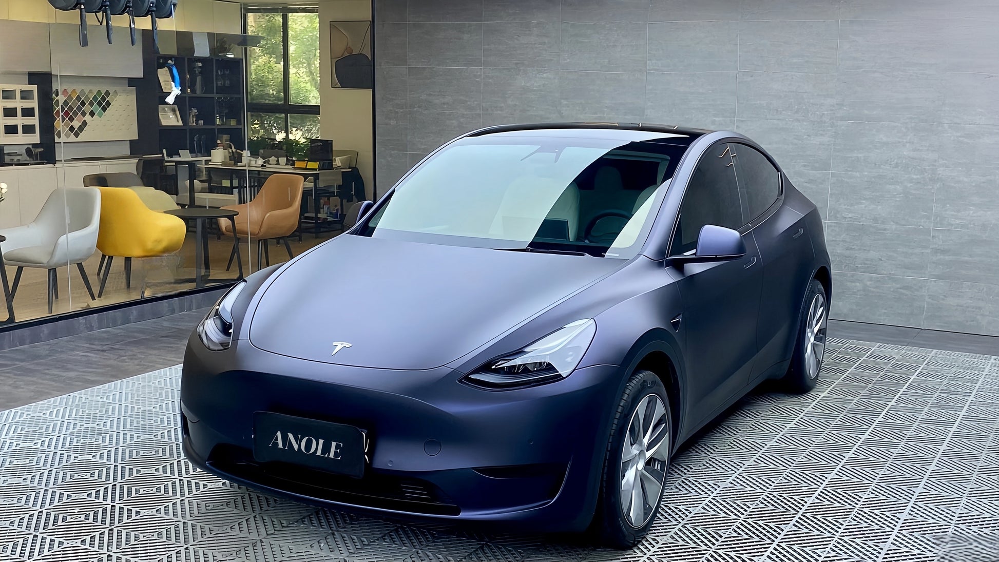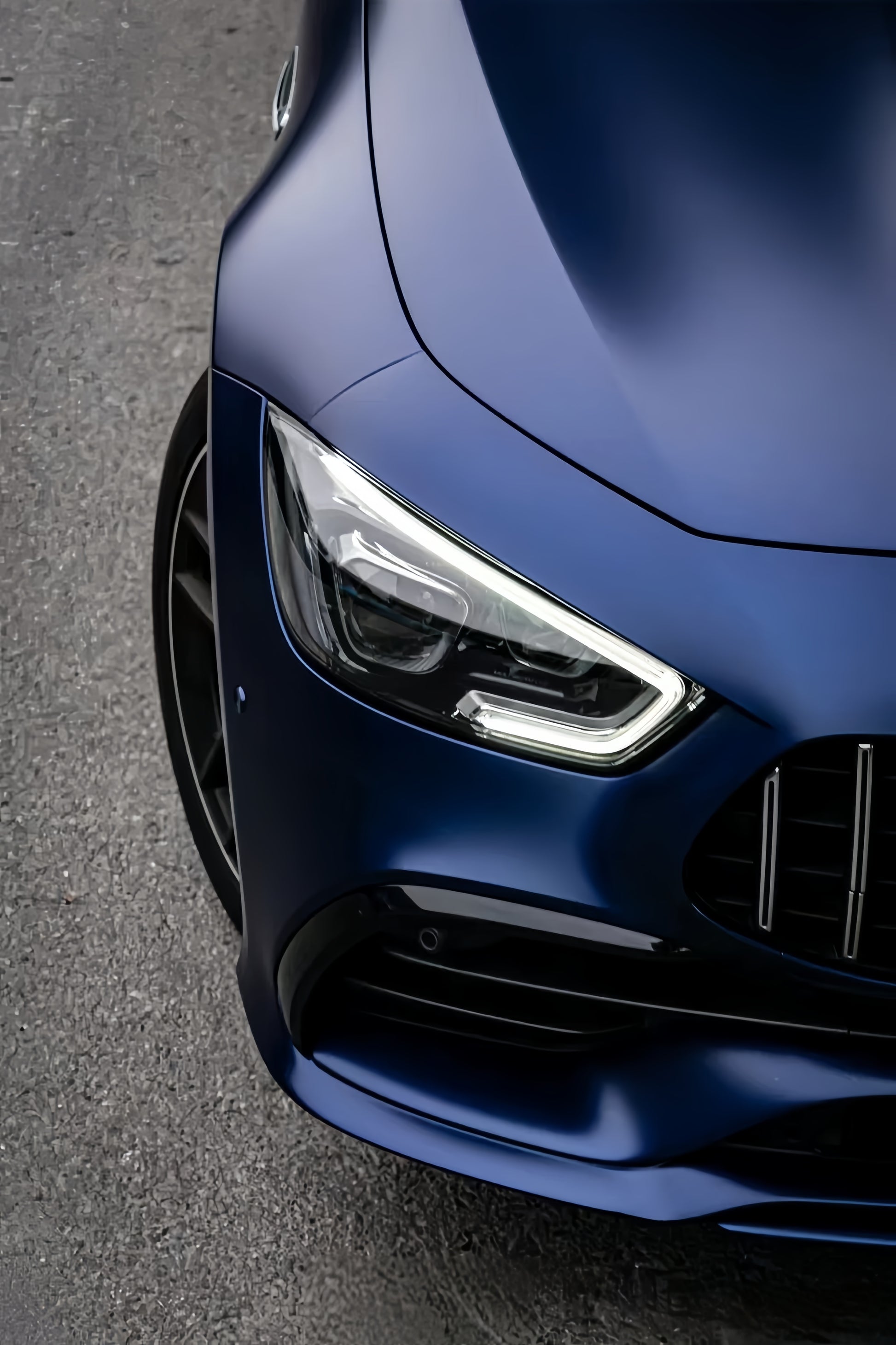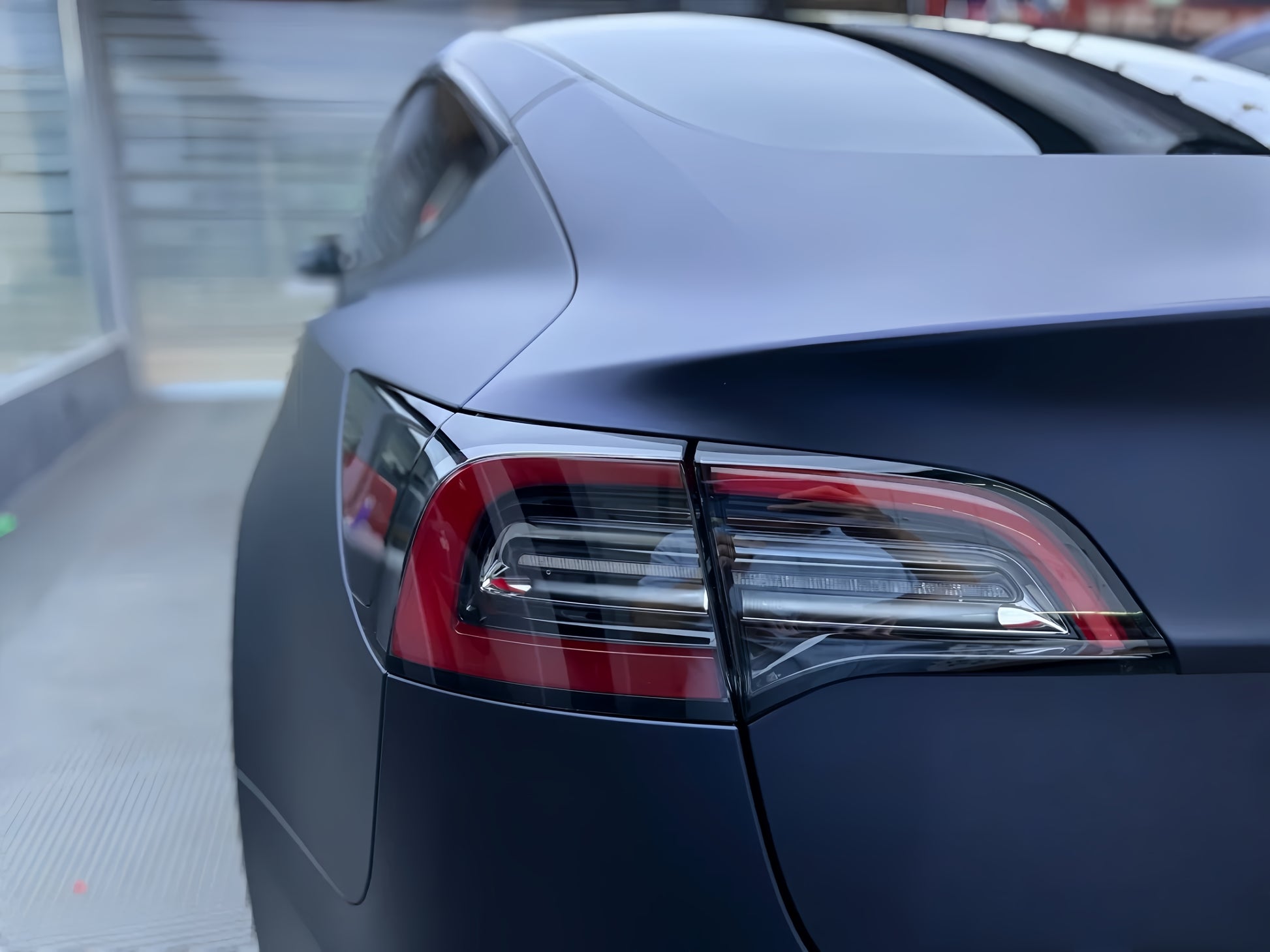 The wrap complements the car’s aerodynamic design, enhancing its smooth curves and sharp lines.