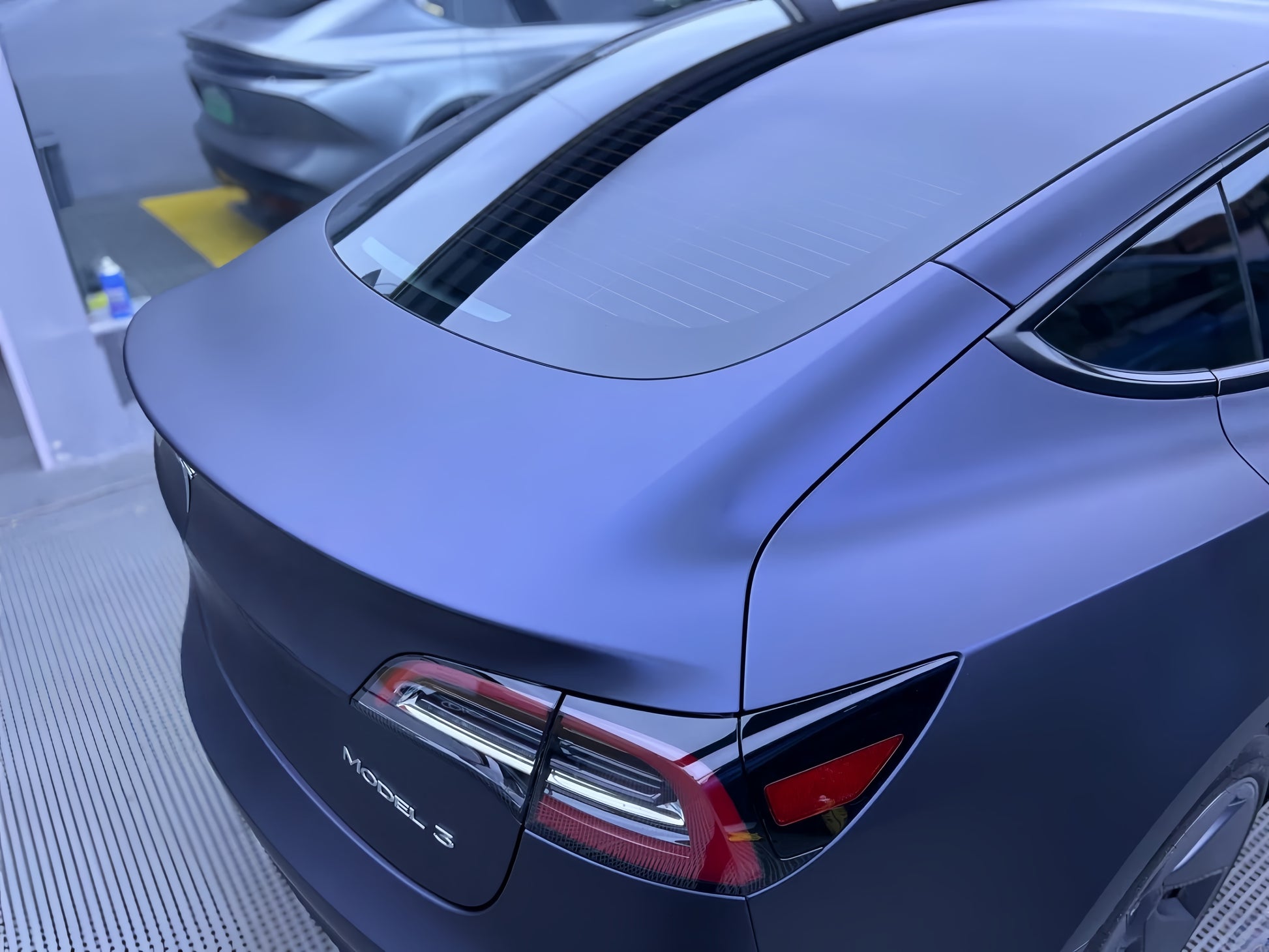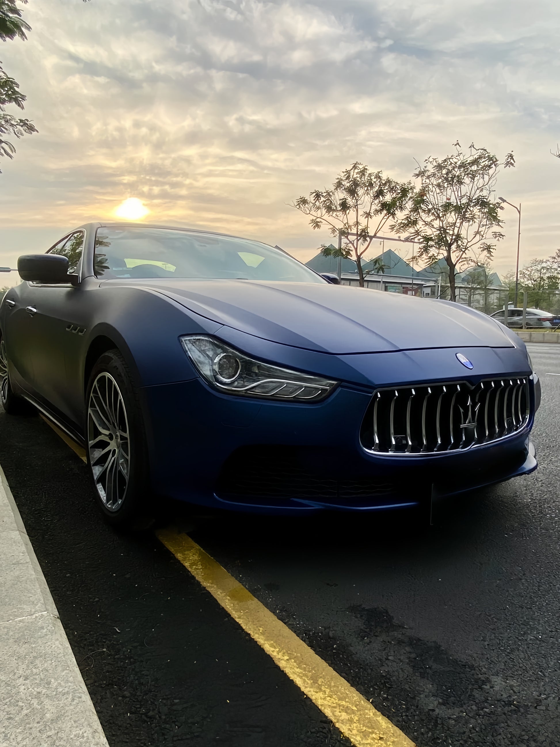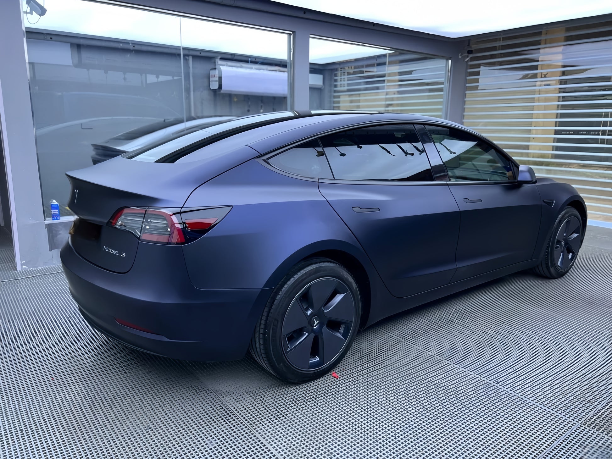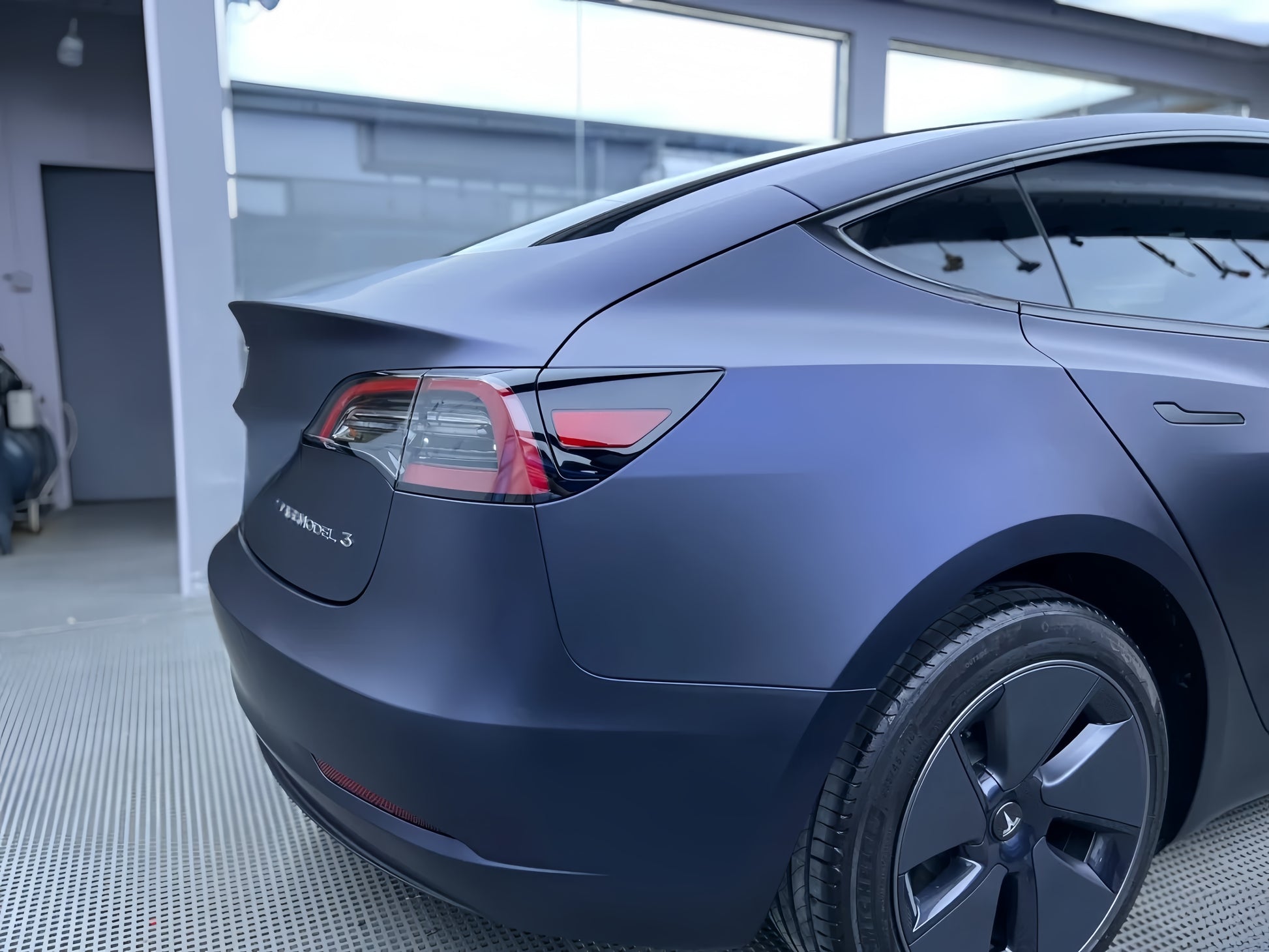 The wrap complements the car’s aerodynamic design, enhancing its smooth curves and sharp lines.