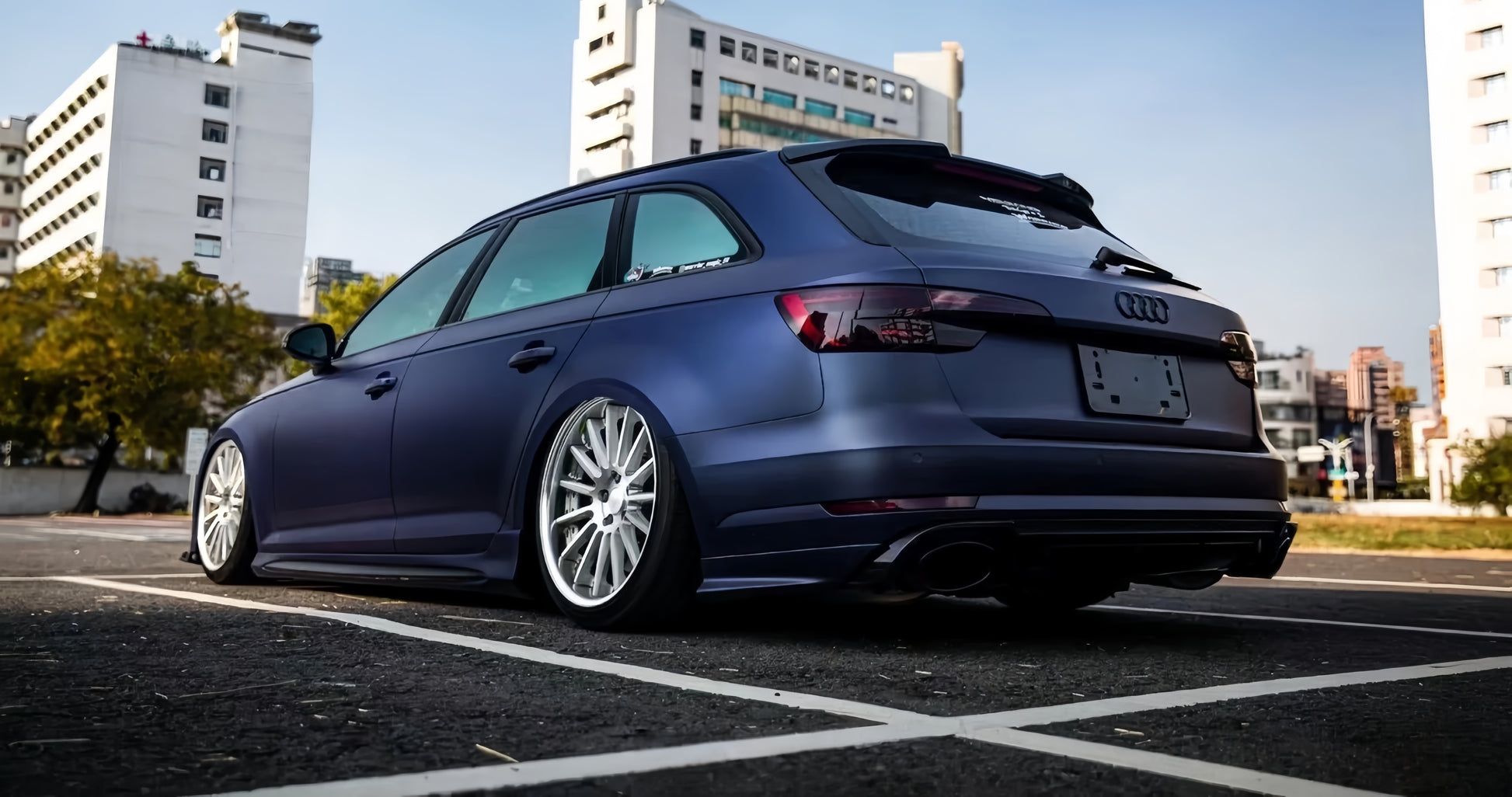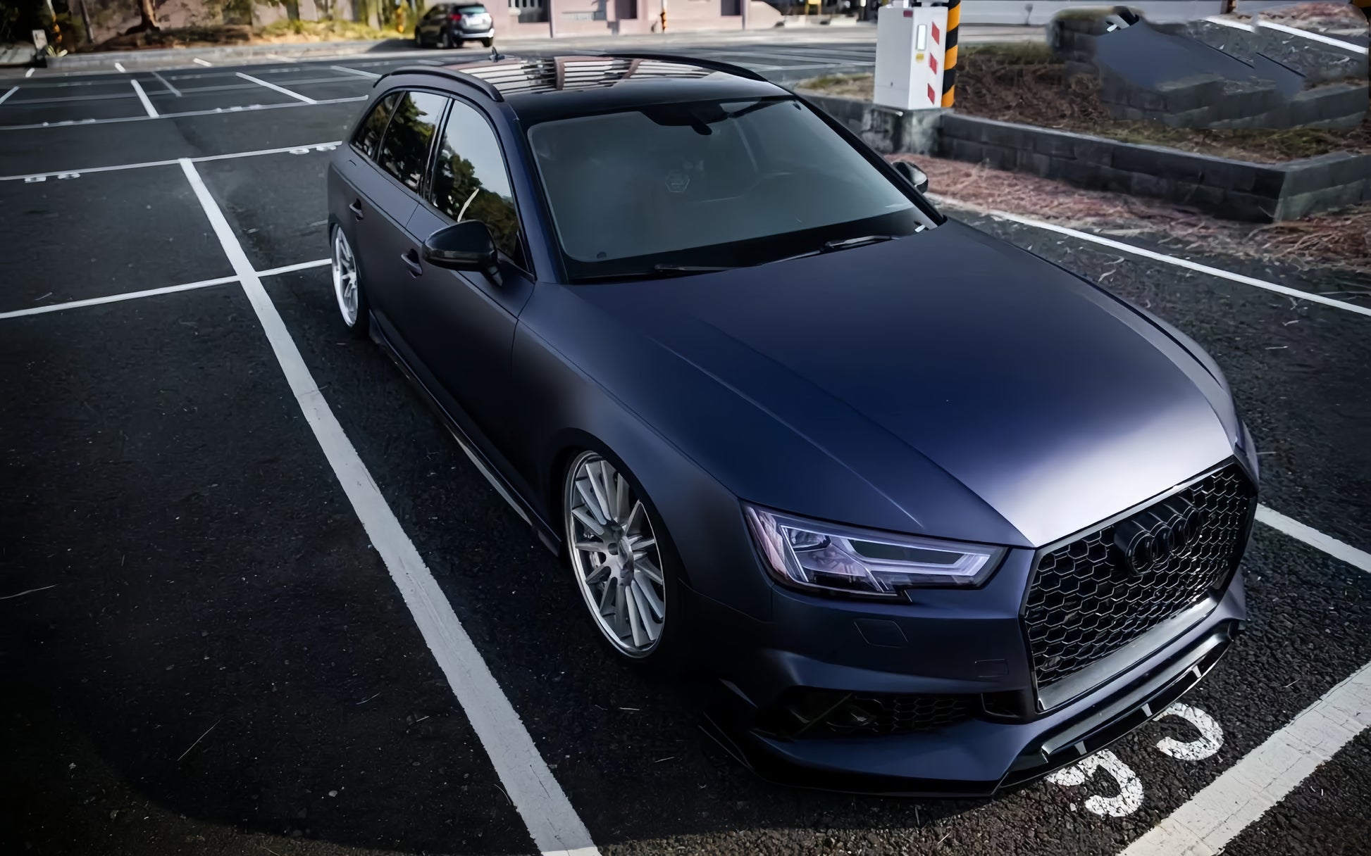 The wrap creates a striking visual effect, making the car stand out in any setting.